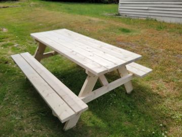 6' Stain Ready Sanded Spruce Picnic Table seats 6. With or without umbrella hole.