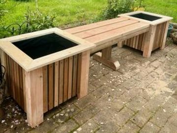 8' Cedar Planter bench with Center Support. Sanded and stain ready.